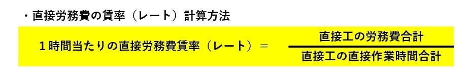 直接労務費の賃率は、「直接工の労務費合計」を「直接工の直接作業時間合計」で割ることにより計算されます。 賃率は、1時間当りまたは1分当りの単価で計算されることが多く、「レート」と呼ぶこともあります。